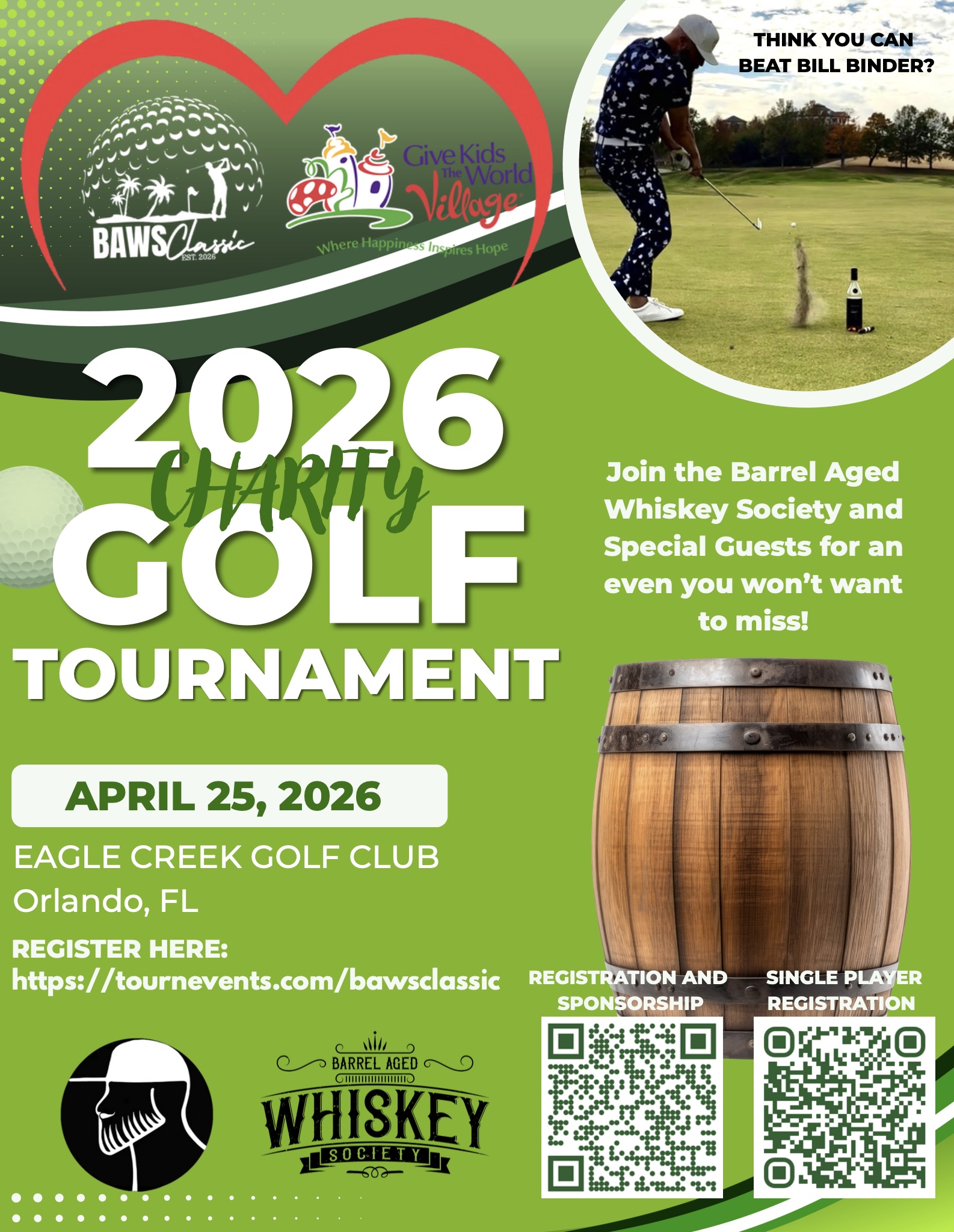 Join us for the inaugural BAWS Classic Golf Tournament, hosted by the Barrel Aged Whiskey Society (BAWS) — a day of great golf, good friends, and even better causes. Set on the stunning fairways of Eagle Creek Golf Club, this event combines competition, community, and charity in true Florida style.