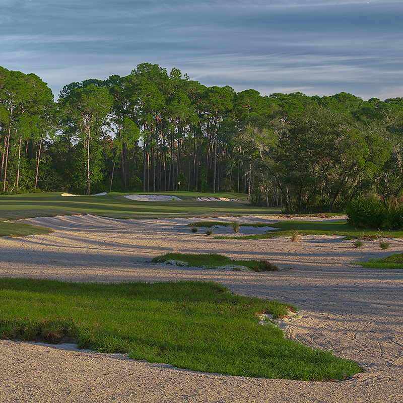 Named for its majestic magnolia trees, this course features elevated tees, spacious greens and challenging water hazards. Wide fairways invite you to hit the ball and hit it long, but beware—11 of the 18 holes boast water hazards and 97 bunkers dot the landscape.