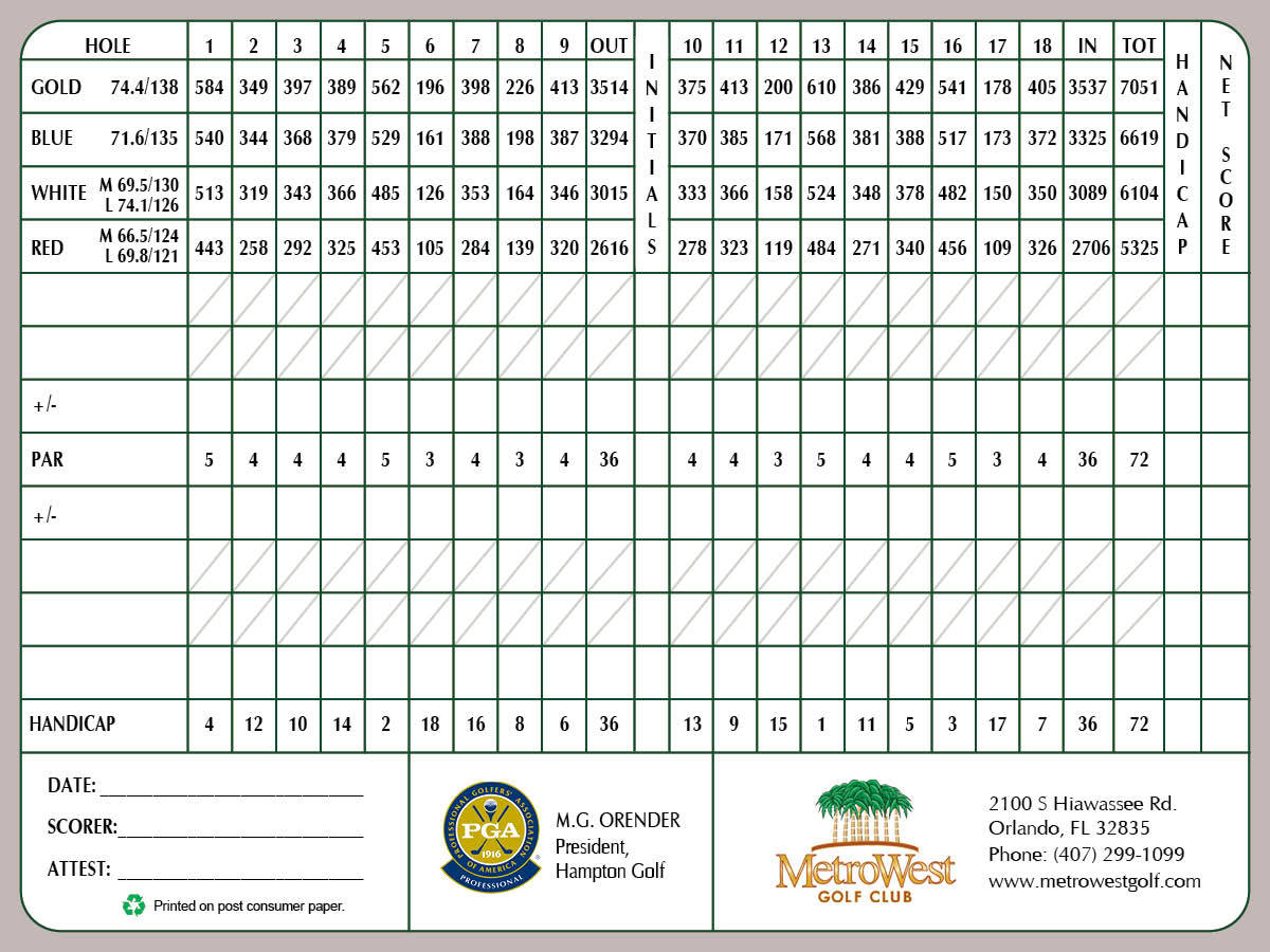 Metrowest Golf Club is ranked among the regions best Golf Courses. A “must-play” for committed golfers. Metrowest offers fresh challenges for scratch players, demanding exacting shots from tee to green.